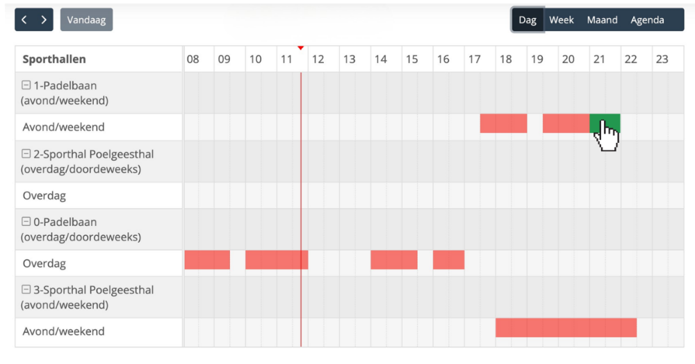 In het overzicht kunt u de beschikbaarheden per sporthal inzien, tijden die vrij zijn kunt u reserveren. Na het reserveren voert u uw klantgegevens in en betaalt u met iDeal. Na de betaling kunt u uw QR-code inzien via uw account.